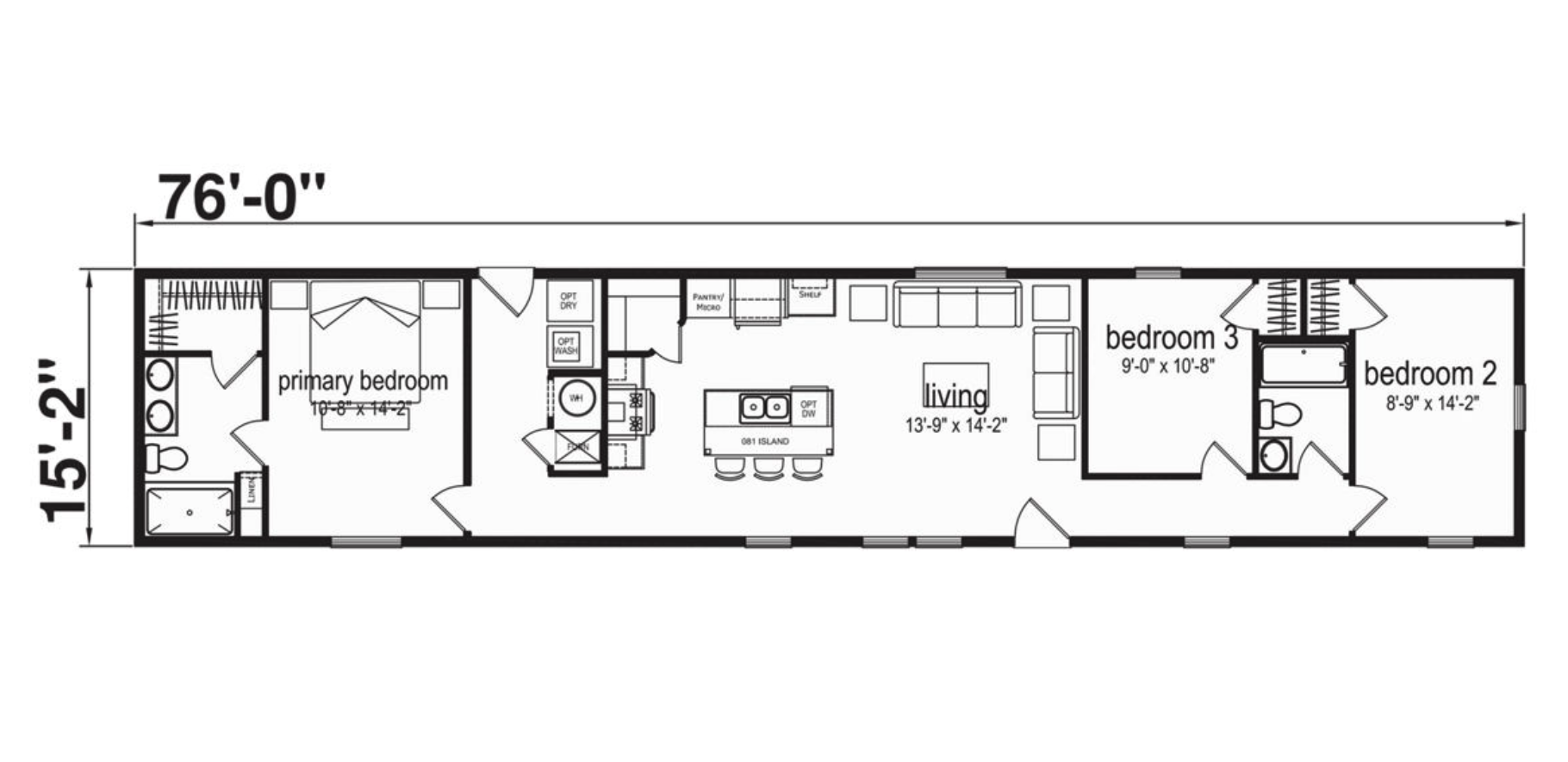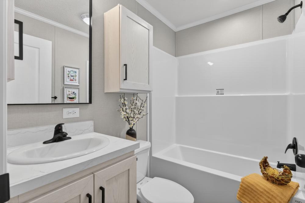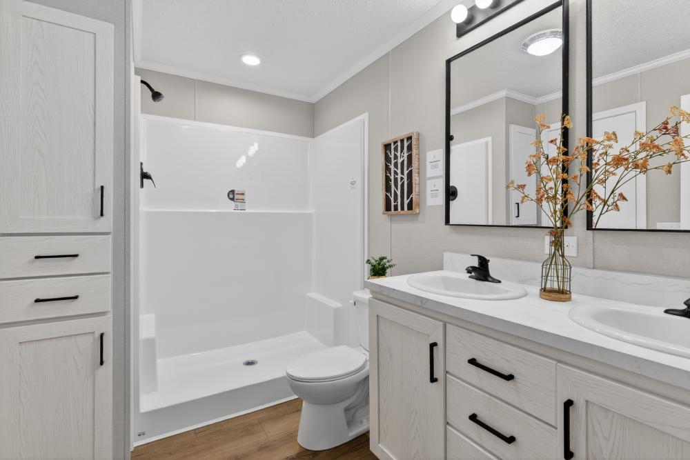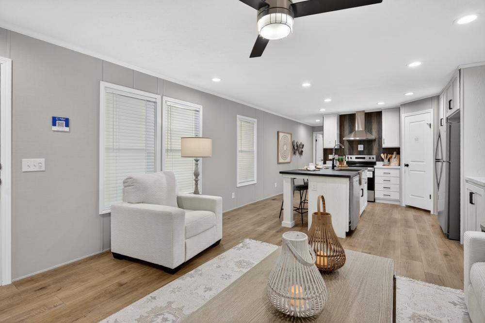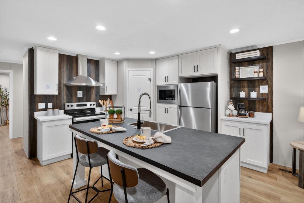 The Westbrook is a 3 bedroom, 2 bathroom single-section home with an open layout designed for comfortable everyday living. The kitchen features a large island with seating, stainless steel appliances, and great cabinet space, flowing into the living area for a clean, functional feel. The private primary suite includes a dual-sink vanity and walk-in shower, while two additional bedrooms and a second full bath offer space for family or guests. Available at our Brainerd, MN location—call 218-829-3278 for details.